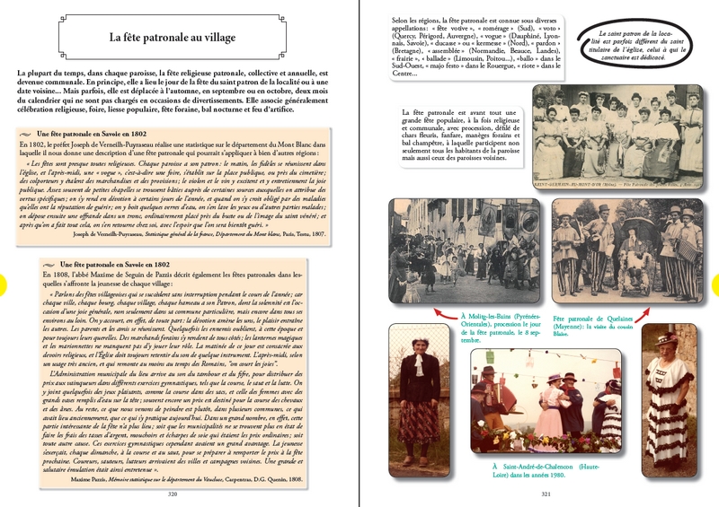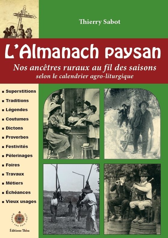Parce que l’Almanach était bien souvent le seul livre que possédaient nos ancêtres ruraux, cet ouvrage est conçu comme un Almanach, avec ses calendriers solaire et lunaire, ses invocations religieuses, sa kyrielle de saints protecteurs, ses pèlerinages, ses conseils agricoles, ses foires et ses dictons de sagesse populaire... mais il est bien plus qu’un Almanach ! Il est surtout un livre d’Histoire qui se veut le témoignage d’un passé oublié... Celui d’une France rurale perdue, avec son rythme régulier de festivités et de travaux agricoles saisonniers, ses gestes du quotidien, ses traditions, ses croyances, ses superstitions, ses usages anciens et ses vieilles pratiques ancestrales.